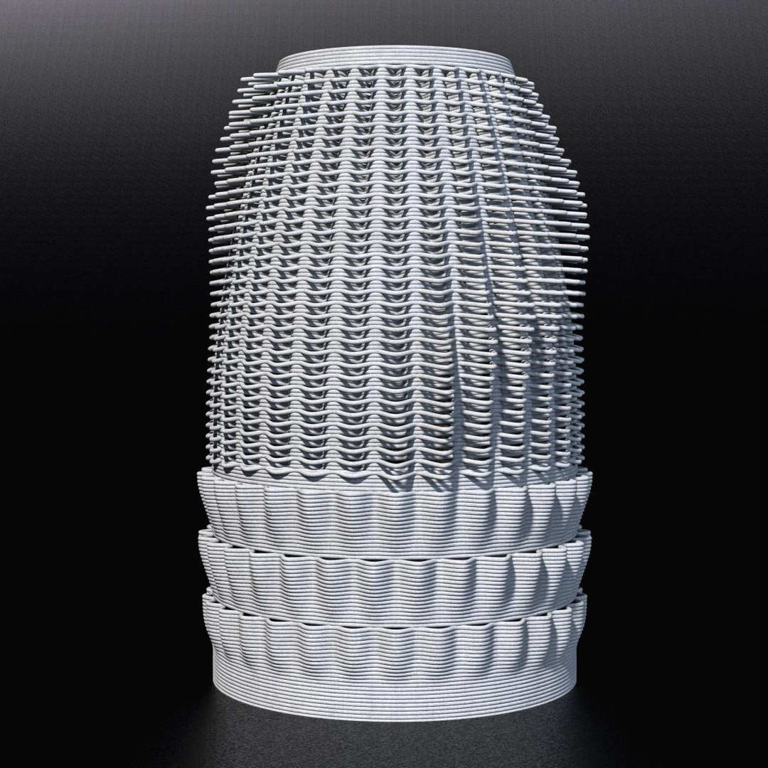 1차 프린트 결과 만족스럽지만 너무 돌출된 부분이 많아 전체의 형태가 잘 느껴지지 않았다. 구멍의 크기는 커서 좋았지만 질서가 없어 보인다. 다음에는 패턴1, 2를 각각 4개의 레이어로 해서 커브의 높이를 줄이고 돌출되는 거리도 8에서 7정도로 줄여봐야겠다. 그리고 image sampler의 곱셈값도 2.5에서 1.5로 줄여봐야겠다.