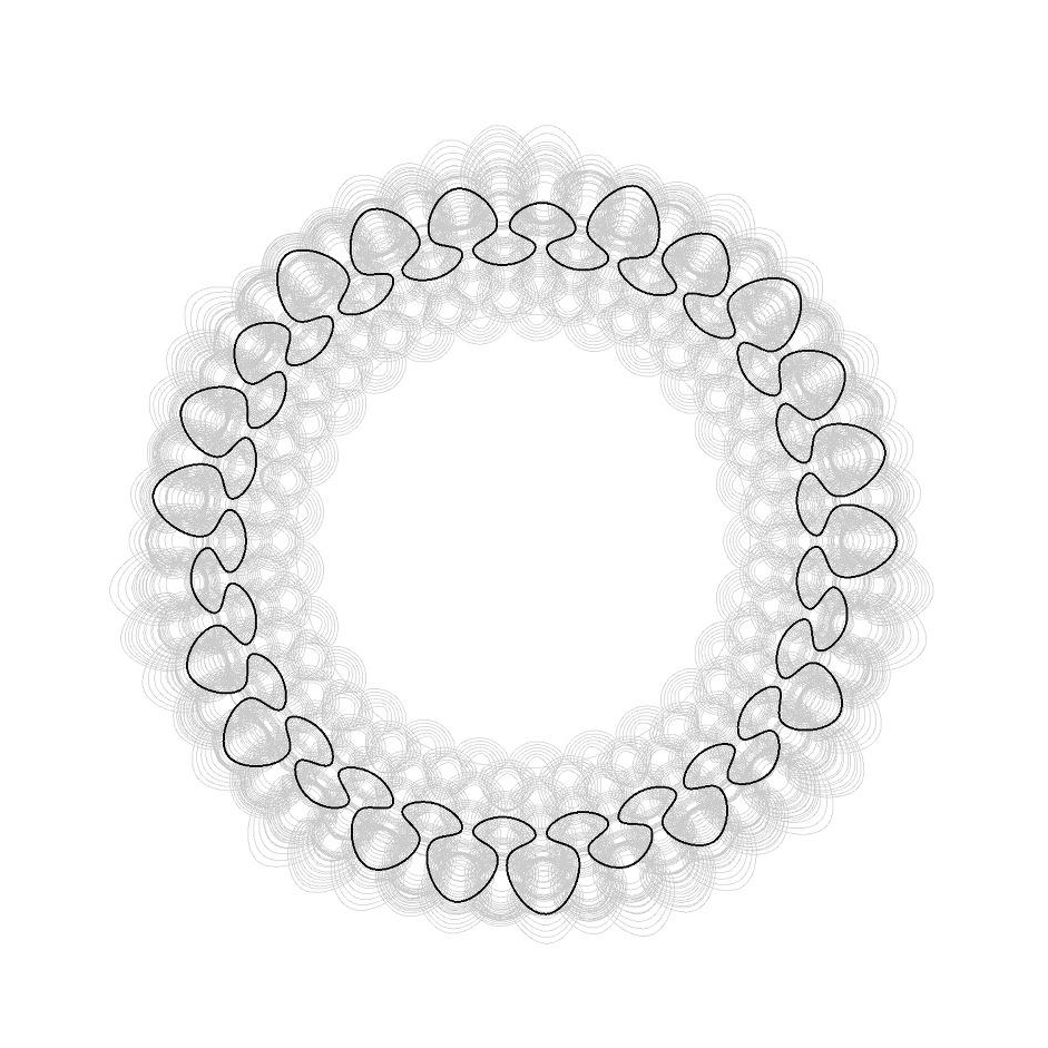 초기의 디자인은 커브가 교차하면서 작은 구멍들을 표면에 만드는 패턴이었다.